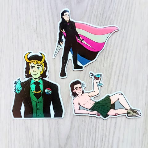 Settinä 6 kpl iso Marvel Loki ja Mobius tarra