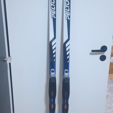 Kuvan sukset 190 cm ja sauvat 135 cm. Ei ehkä enää ihan kilpaladulle mutta muuten näillä sivakoi vielä vuosia. Ainoastaan nouto.