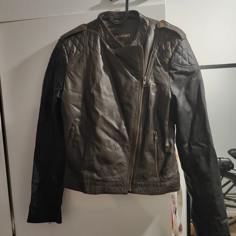 Myydään Mangon / MNG Mango MNG musta nahkatakki, valmistettu aidosta nahasta. Takki on naisten kokoinen M. Siinä on vetoketjutaskut ja edessä vinottain oleva vetoketju. Takissa on pitkähihaiset hihat, joissa myös vetoketjut. Nahka saanut hieman patinaa, joka sopii takin tyyliin.
