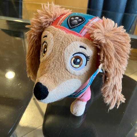 Ryhmä Hau pehmolelu, esittää koiraa oranssissa ja ruskeassa värissä. Pehmolelu on tarkoitettu lasten leikkeihin ja keräilyyn.