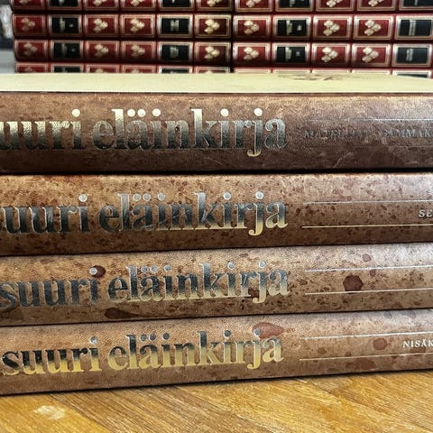 Paksut ja painavat kirjat vuodelta 1988.