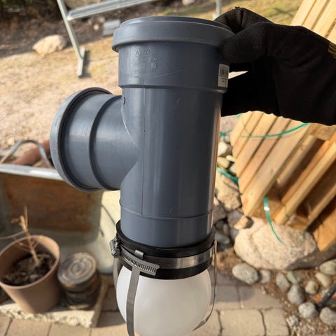 Vaihdettiin läppäventtiili tilalle koska mahtui meidän kaivoon paremmin.