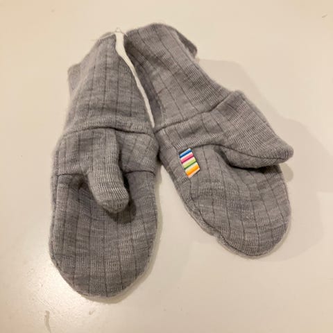 Kuvanmukaisen khakinväriset merinovillahanskat / tumput kokoa 70/80 tai 6-12kk.