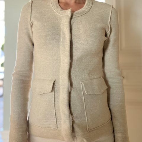 Myydään Filippa K -merkin pörheä alpakkaa ja villaa sisältävä neuletakki. Levenevät hihat. Väri canvas beige viittaa hyvin vaaleaan beigeen tai melko tummaan luonnonvalkoiseen. Osassa kuvista väri taittaa liikaa keltaiseen. Ovh 370 euroa.
