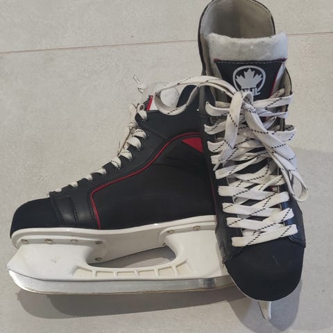 NHL 5000 jääkiekko luistimet koossa 41. Yksi nauha puuttuu! Luistimissa on musta väri ja ne on suunniteltu jääkiekon harrastamiseen. Materiaalit ja rakenne tukevat lasten käyttöä.