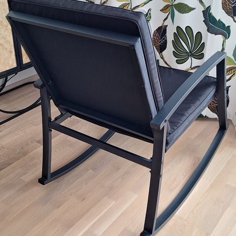 Moderni ja tyylikäs Bloomingville keinutuoli. Runko on mustaksi maalattua metallia, istuin- ja selkäosa luonnonväristä polyrottinkia. Tyylikäs ja kepeä muotoilu. Sijoita sisätiloihin tai vaihtoehtoisesti katetulle terassille.