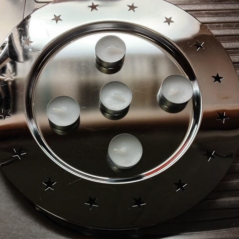 Tarpeettomana myyn kynttiläalusta viidelle tuikulle.