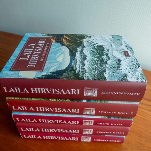 vaikka itselle tai lahjaksi erittäin hyväkuntoiset Laila Hirvisaaren (Hietamies) kirjat Imatra-sarja 5 kpl, yht. 10 e, Imatra-sarja: Kruununpuisto, Myrskyn edellä, Grand Hotel, Vuoksen helmi, Pihkovan kellot, siisti ja savuton koti, nouto tai voin myös lähettää