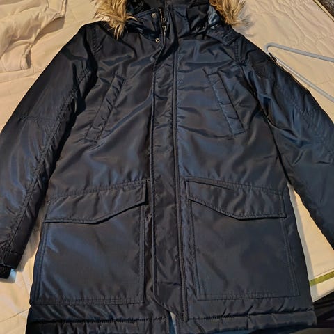 Kunnon paksu toppatakki pojalle, käyttämätön/uusi. Reilumpi mitoitus. Koko 152cm.