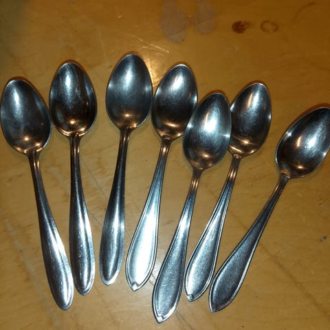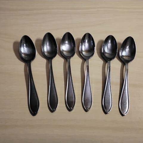 Vuosikymmeniä vanhat kotimaiset ruokalusikat. Paljon käytetyt, joten normaalia käyttökulumaa. Lusikoiden pituudet 21cm sekä 18cm. Molempia kokoja 4 kpl. Kaikissa Sorsakoski-teksti.