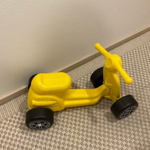 Plasto lasten potkupyörä, sininen, valmistettu muovista. Sopii pienille lapsille liikkumisen ja tasapainon harjoitteluun.