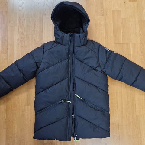 Tyylikäs talvitakki tytölle tai pojalle. Uusi, paljon heijastimia, irrotettava huppu.