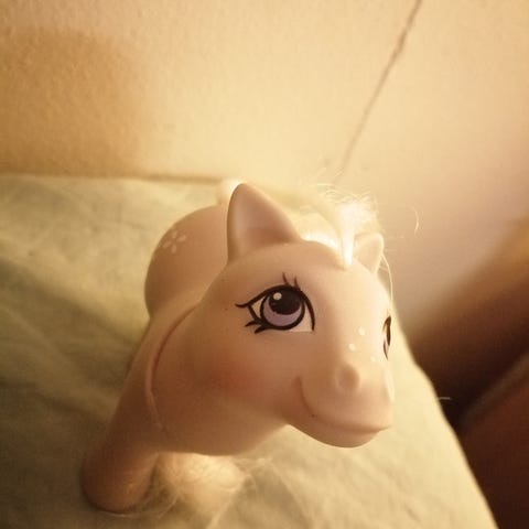 Hasbro 2010 My Little Pony So Soft Newborn Sunny Daze Pegasus. Eli vuoden 2010 Hasbro mallistoa oleva vauvaponi. Ääntelee kun painaa takajalkaa, jossa on teksti. Kova pyörivä pää, pehmeät muut osat ja sisällä on paristoille tarkoitettu kotelo. Tutti puuttuu!