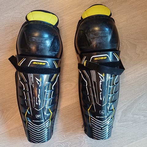 Jonkun verran jääkiekkoa nähneet polvisuojat 160-170cm pelaajalle, 36cm pitkät.