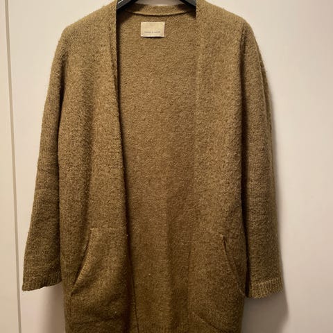 Samsøe samsøe neuletakki. Kokolapussa lukee L mutta itse olen tätä 190cm +100kg miehenä käyttänyt ja ihan hyvin istuu. En ole varma onko virallisesti miesten vai naisten siksi unisex.