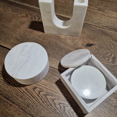 Myytävänä Bloomingvillen valkoinen marmorinen PEGGY - kynttilänjalka.