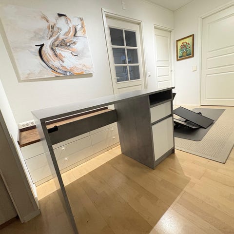 Uudenveroinen pöytä, vain kasattu ja kuitenkin meille liian suureksi todettu. Ainoastaan haku Haukiputaalta. Ovh 159€