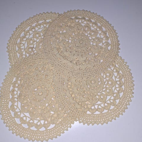Virkattuja kuvienmukaisia puuvillaisia pitsipöytäliinoja 2 kpl toinen 180cm ja toinen 110cm.