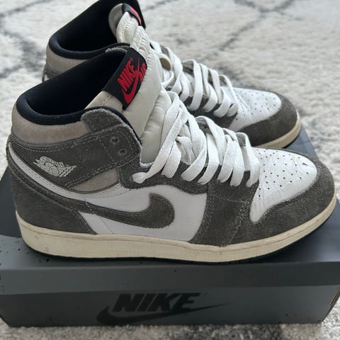 Nike Air Jordan 1 lasten kengät, koko 39. Värit punainen ja musta. Korkeavartiset lenkkarit, joissa on valkoinen Nike-logo sivuilla. Sopivat unisex-lapsille.