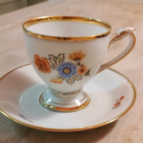 12 kuppia ja lautasta. Kaikki ehjiä.