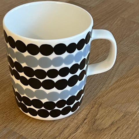 Marimekko Siirtolapuutarha muki mustavalkoinen posliini