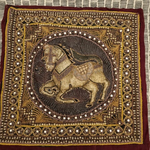 Hevonen Koristetyynyliina / seinävaate 40x40 cm kulta ja viininpunainen