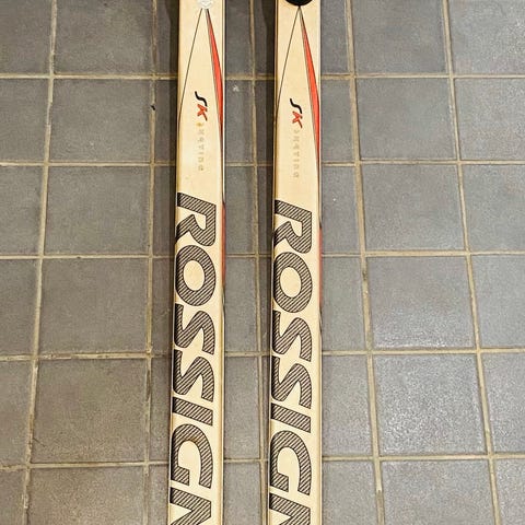Rossignol Classic hiihtosukset, sinivalkoinen väri, varustettu sinisillä sidonnoilla. Soveltuvat perinteiseen hiihtotyyliin. Materiaalit ja koko eivät ole tiedossa.