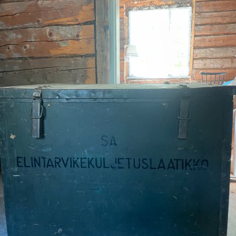 Laatikon korkeus n. 15cm, pituutta metrin kinttailla.