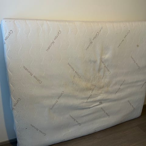 Kokoontaitettava hyväkuntoinen patja. Menee säilytyksen ajaksi pieneen tilaan (ks. kuva). Pituus levitettynä 195 cm, leveys 65 cm ja paksuus 7 cm. Tyylikäs sanomalehtikuosi kankaassa, kantaat ehjät ja puhtaat. Myynnissä Lohjalla, mutta kulkeutuu omien menojen mukaan ilman postimaksua Kamppiin ja Espoon Ikealle. Hp. 30 euroa