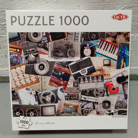 Kaikki palat tallessa. Pahvikopassa käytönjälkiä.