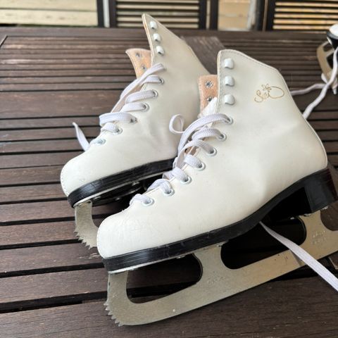 Lasten luistimet koko 34. Väri valkoinen. Lämmin vuori. Materiaalina keinonahka ja teräksiset terät.