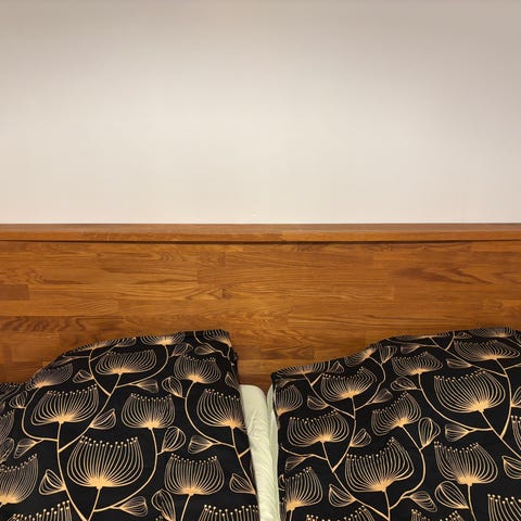 Tumman ruskea sängyn pääty. Vain nouto.