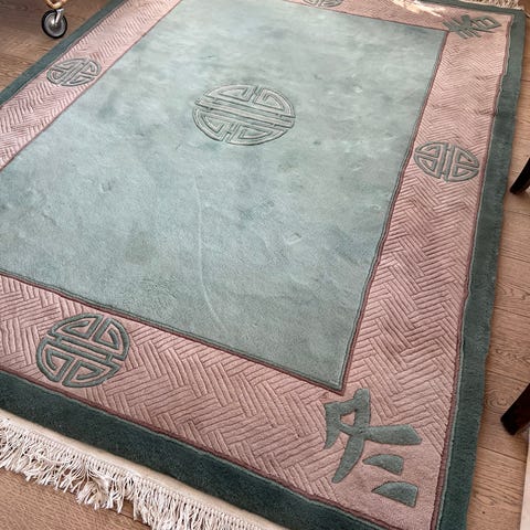 Pandamatto, valmistettu villasta. Melko uusi, joten siitä voi vielä irrota hieman materiaalia. Huomioithan – meillä on koira, joten mattoon voi olla jäänyt jonkin verran karvaa, mikäli olet allerginen.
