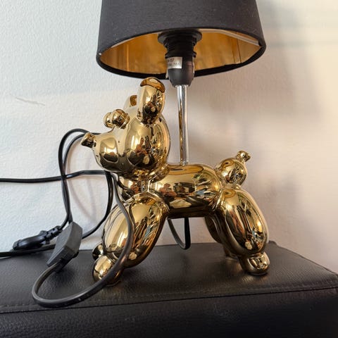 Puusta valmistettu seinälamppu, jossa valkoinen koira kurkistaa vaaleanpunaisesta koirankopista. Puisen etuosan korkeus 31m ja leveys 33 cm. Myynnissä Lohjalla, mutta kulkeutuvat ilman postimaksua Helsinkiin, Espoon Ikealle,Espoon keskukseen, Myllypuroon ja Itä-Helsinkiin. Hp. 30 euroa.