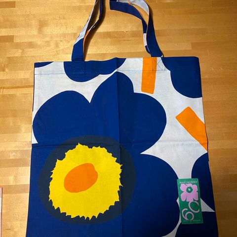 Marimekko Unikko kangaslaukku, joka on väriltään vihreä ja vaaleanpunainen. Laukku on valmistettu kestävästä kankaasta ja soveltuu unisex-käyttöön. Kuviointi perustuu Maija Isolan suunnittelemaan Unikko-kuosiin, joka on yksi Marimekon tunnetuimmista kuoseista. Unikko 60v - juhlamallistoa