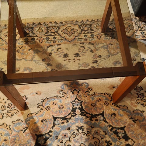 Myydään kaunis täyspuinen sohvapöytä lasisella alatasolla! Pöydän iän vuoksi pinta pitäisi käsitellä uudestaan (ks. kuvat).