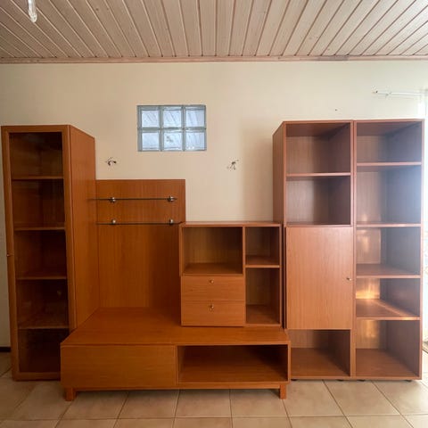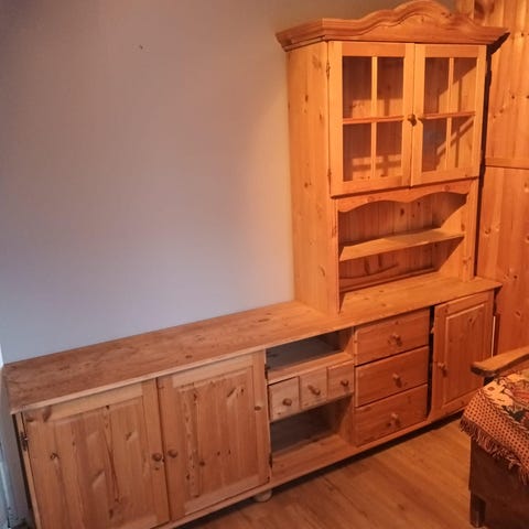 Myydään erittäin siiskuntoinen ja uudenveroinen kirjahylly, tv-taso ja vitriiniyhdistelmä. Etelä-Pohjanmaalaista käsityötä. Tukevaa rakenne. Aitoa koivua. Tv-tason leveys on 90 cm.