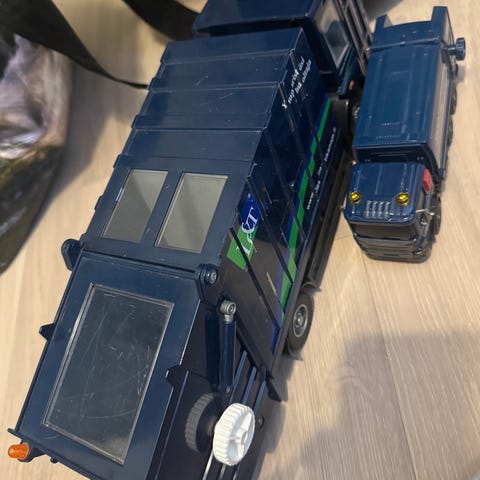 Myydään roskaauto josta kuuluu ääniä ja kippaa roskaastian kun vaihtaa patterit. Valmistus virhe, takana oleva luukku aukeaa koko ajan. Auto on noin 38cm pitkä.Nouto kotoa rajakylästä Vantaalta.