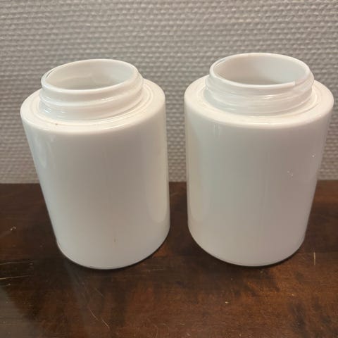 Valkoista lasia, pieniä Valaisin Kupuja, kork. 4.2cm, reijän halk.1.3cm, ehjiä.