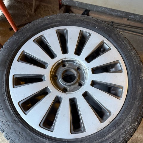 Nastarenkaat siistikutoisilla alumiinivanteilla. Vanteet ovat mielestäni käytetyksi todella hyvä kuntoiset. Ei kanttari hiertymää mutta jotakin pientä kulumaa voi jo olla. Ovat olleet alla Audi A4.ssa.