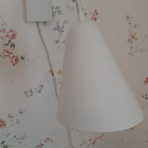 Valkoinen metallinen Seinävalaisin, Name/Aksel, Model:4982400, lampun kiinnityksestä kuva, toimii.