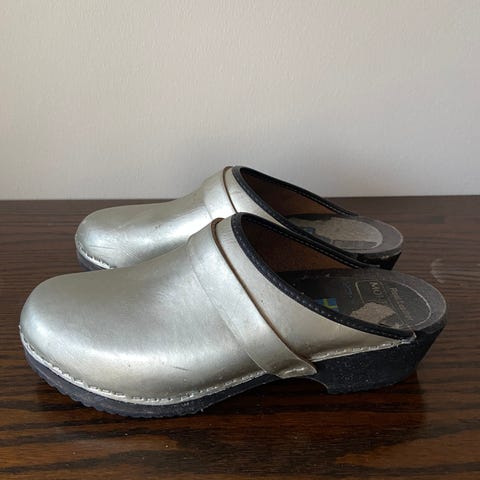 Ruotsalaisen Mohedan valmistamat suloiset kukkakuvioiset puukengät. Ei käytön jälkiä. Päällinen aitoa nahkaa, pohjat puuta joihin liimattu kumipohjat. Hintalapussa oli koko 39 mutta itsellä liian leveä jalka näihin eli kapeajalkaiselle käy ja mainiosti myös koolle 38. Nouto tai Toridiili.