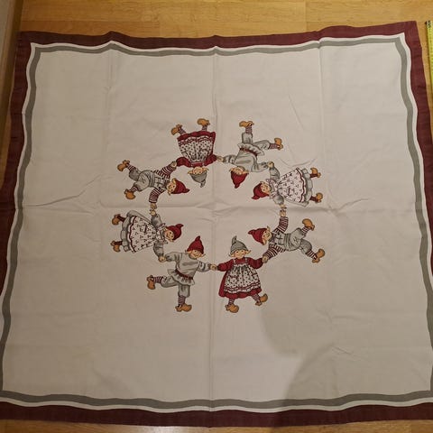 Vaalea osa pellavaa, ympäröity sametilla. Ylellisen/tyylikkään näköinen liina kuuselle. Jalka myyty.