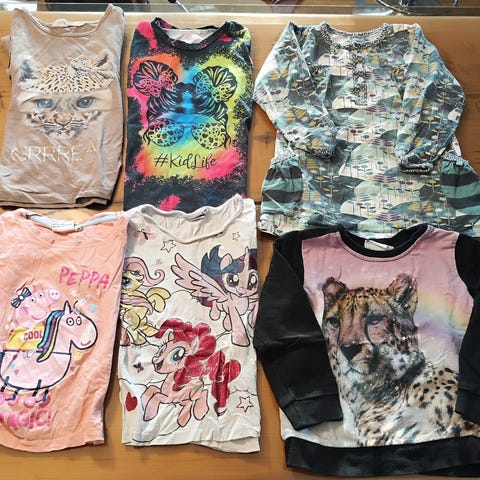 4x yöpaita, 4x yöhousut, pörröhuppari, leggingsit, shortsit, 5x mekko.