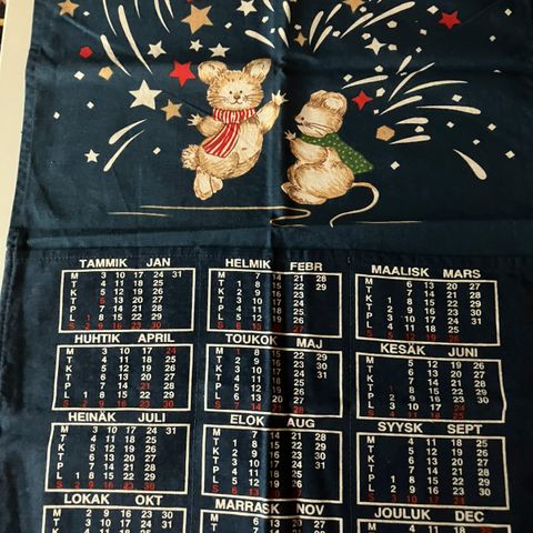 Asiasanoja: kalenteripyyhe , keittiöpyyhe , keittiöliina , pyyhe , liina , käsipyyhe , kalenteri , vuosi 2001