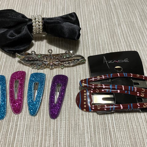 Erilaista hiustenlaittotavaraa, pinnejä, klipsejä, rullat kiharoita varten 💓