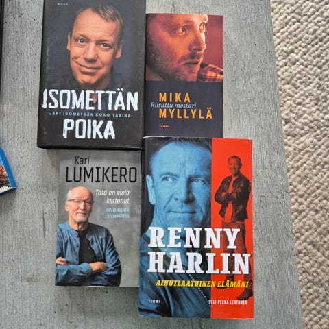 Myydään lukemattomia elämänkerta kirjoja.
