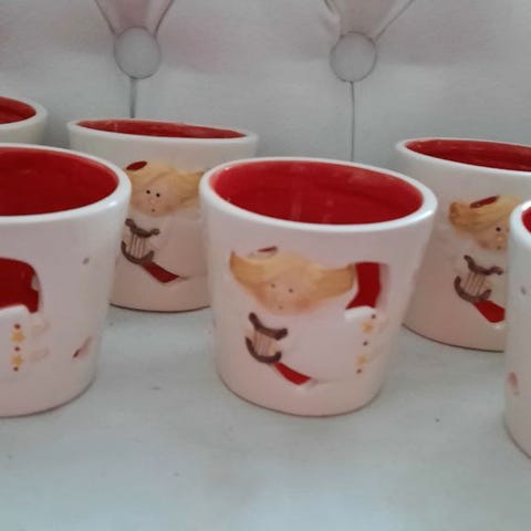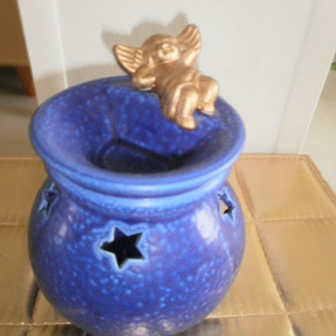 Enkelituikut ja kultainen enkelipurkki: Tummansininen, vaaleansininen ja kullanvärinen keraaminen tuikkuastia. Sinisissä koristeena enkeli reliefit. Kullanvärisessä tähden mallisia reikiä, joista valo siivilöityy. Lisäksi myynnissä kullanvärinen enkeli koristepurkki keramiikkaa. Tummansinisessä kultainen ja vaaleamman sinisessä hopeinen enkelikoriste. Myynnissä Lohjalla, mutta kulkeutuu ilman postikuluja Kamppiin, Espoon Ikealle ja Espoon keskukseen. . Hp. 5 euroa/kpl.