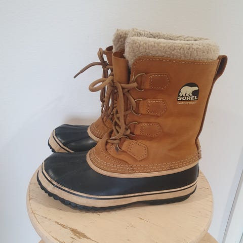 Siistit teko turkis kauluksella varustetut alkuperäiset Sorel naisten/ tyttöjen korkeat talvisaappaat. Kokoa 38,5