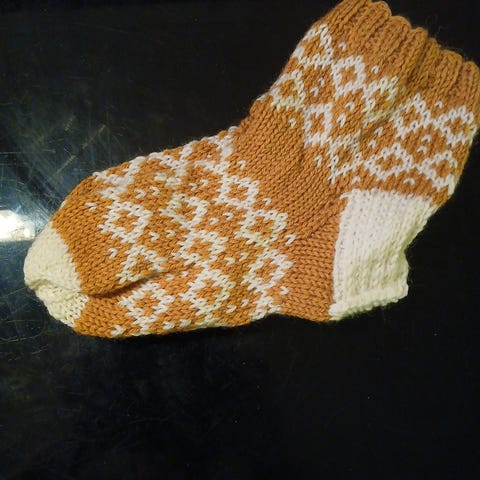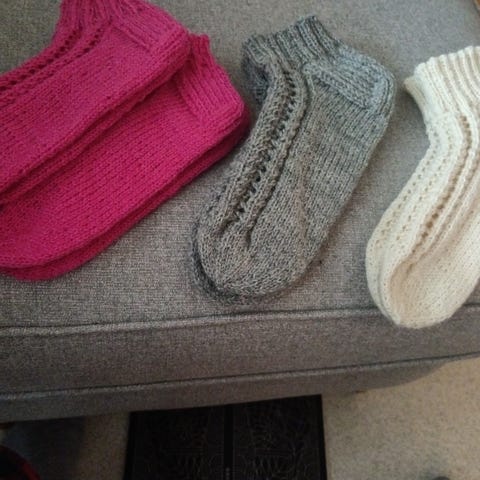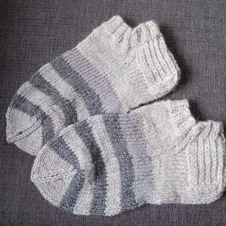 Jalkaterän pituus 25 cm, neulottu Nalle-langasta. 8€/pari.